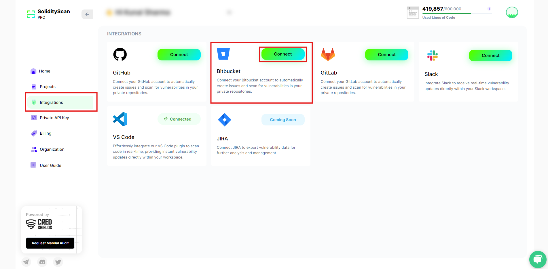 **Note:** BitBucket integrations require a Pro plan. If you haven't upgraded yet, please upgrade your plan [here](https://solidityscan.com/billing).
