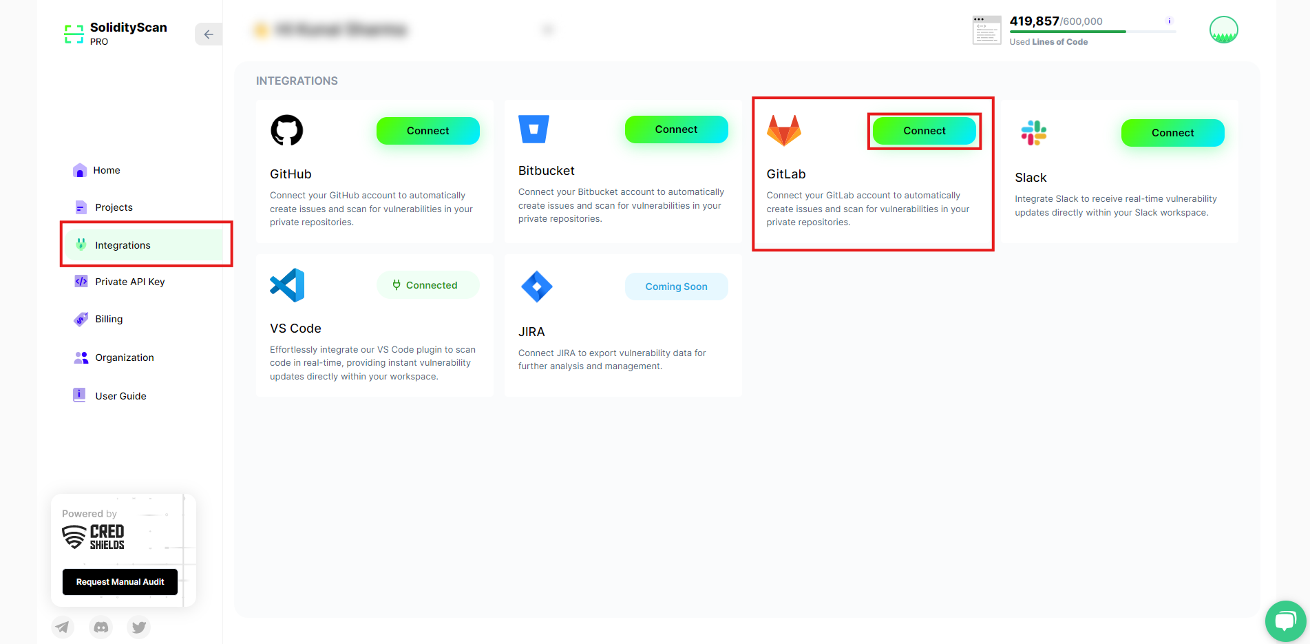 **Note:** GitLab integrations require a Pro plan. If you haven't upgraded yet, please upgrade your plan [here](https://solidityscan.com/billing).
