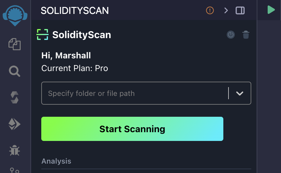 Scan any File or Folder: Allows you to scan any Solidity file or folder for vulnerabilities.