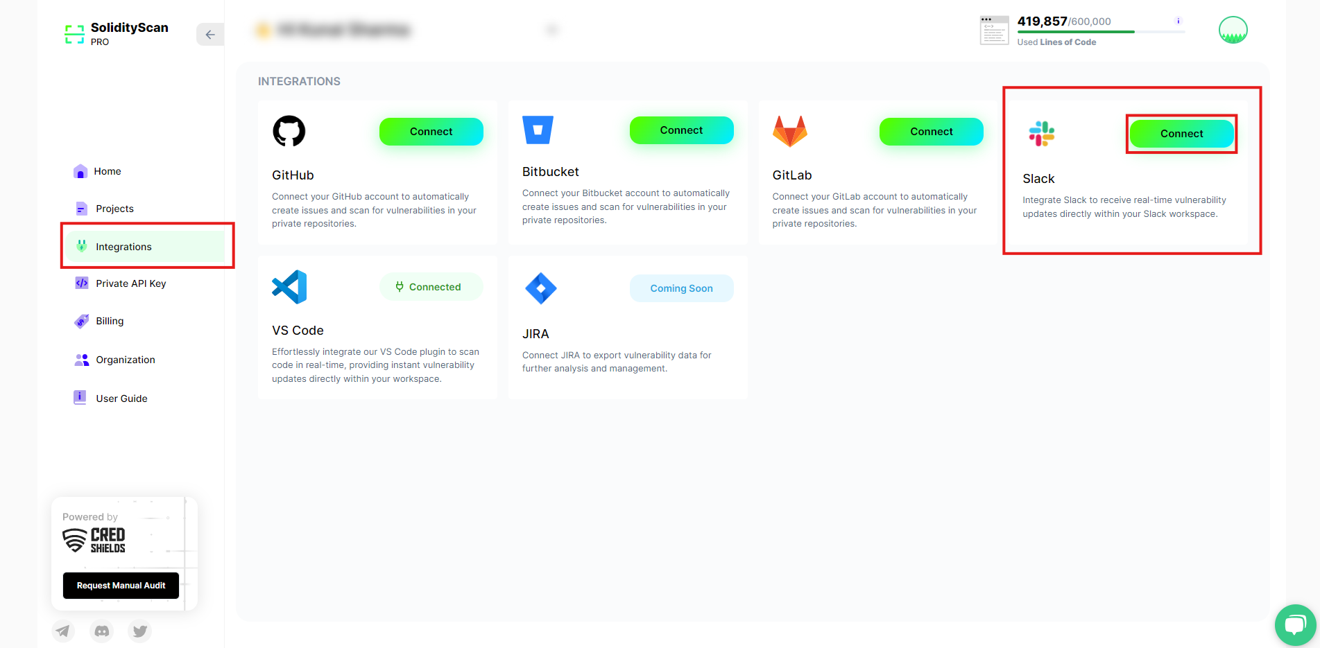 **Note:** Slack integrations require a Pro plan. If you haven't upgraded yet, please upgrade your plan [here](https://solidityscan.com/billing).